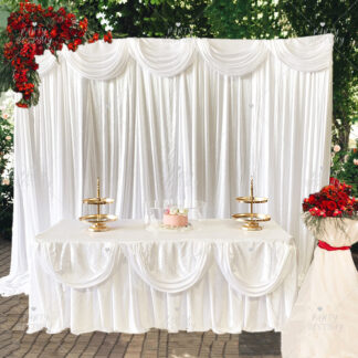 White Silk Satin Backdrop Curtain Tablecloth Table Cover with Swags Wedding 1835x 75x 74cm