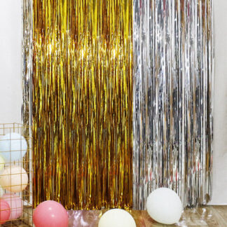 1M x 4M Foil Metallic Fringe Tinsel Curtain Gold Silver Backdrop Party Deco