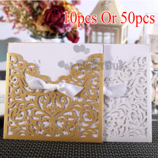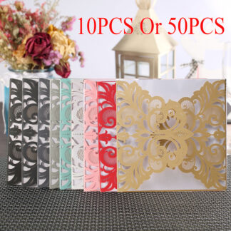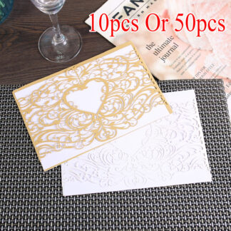 10/50pcs Laser Cut Wedding Invitation Cards Pearl Card Insert Envelope Party