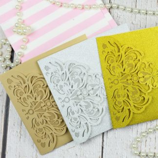10/50X Laser Cut Wedding Invitations Card Glitter Pearl Card Insert Envelope