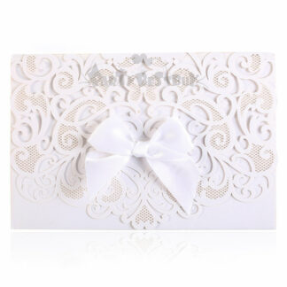 UP TO 100pcs Wedding Invitation Card Laser Cut Pocket Insert Envelope White Bow