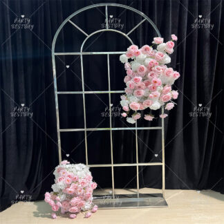 2.2 m Glossy Silver Window Arch Backdrop Flower Stand Frame Wall Wedding Props Event
