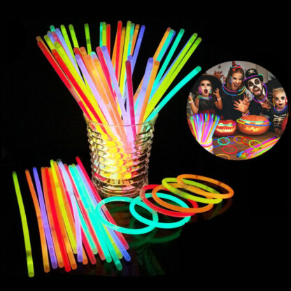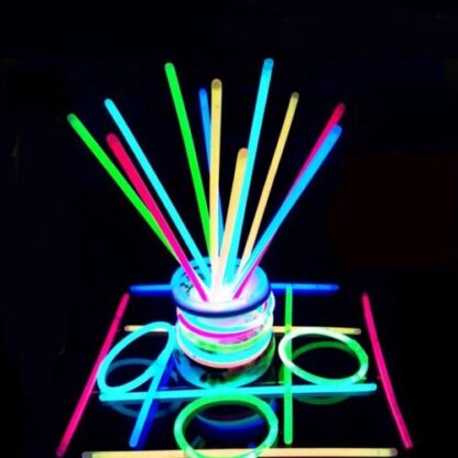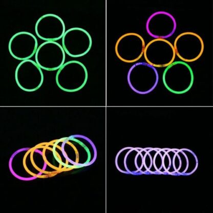 -Inside the glow stick bracelets are two chemicals that emit light or glow when they are mixed together. Inside the glow stick bracelets is a thin glass tube, when you bend it for the first time, you break the inner glass tube. This mixes the two chemicals together. Just shake it up, it starts glowing like magic.