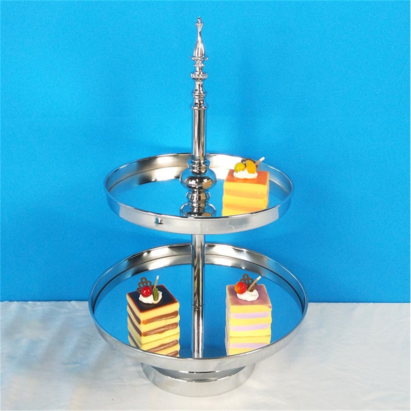 2 Tiers Silver Mirror Top Cake Stands Rack Cake Hold Wedding Birthday Party Decor