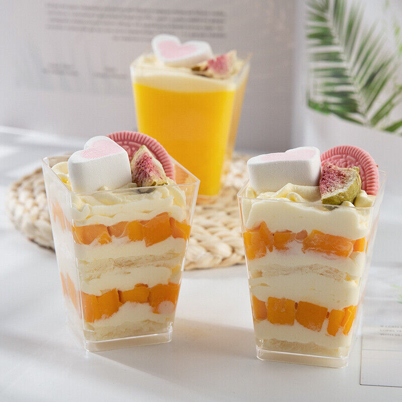 – Used as a mousse, jelly, pudding, tiramisu and other desserts container.
