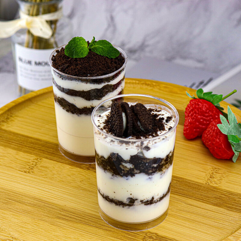 Used as a mousse, jelly, pudding, tiramisu and other desserts container.