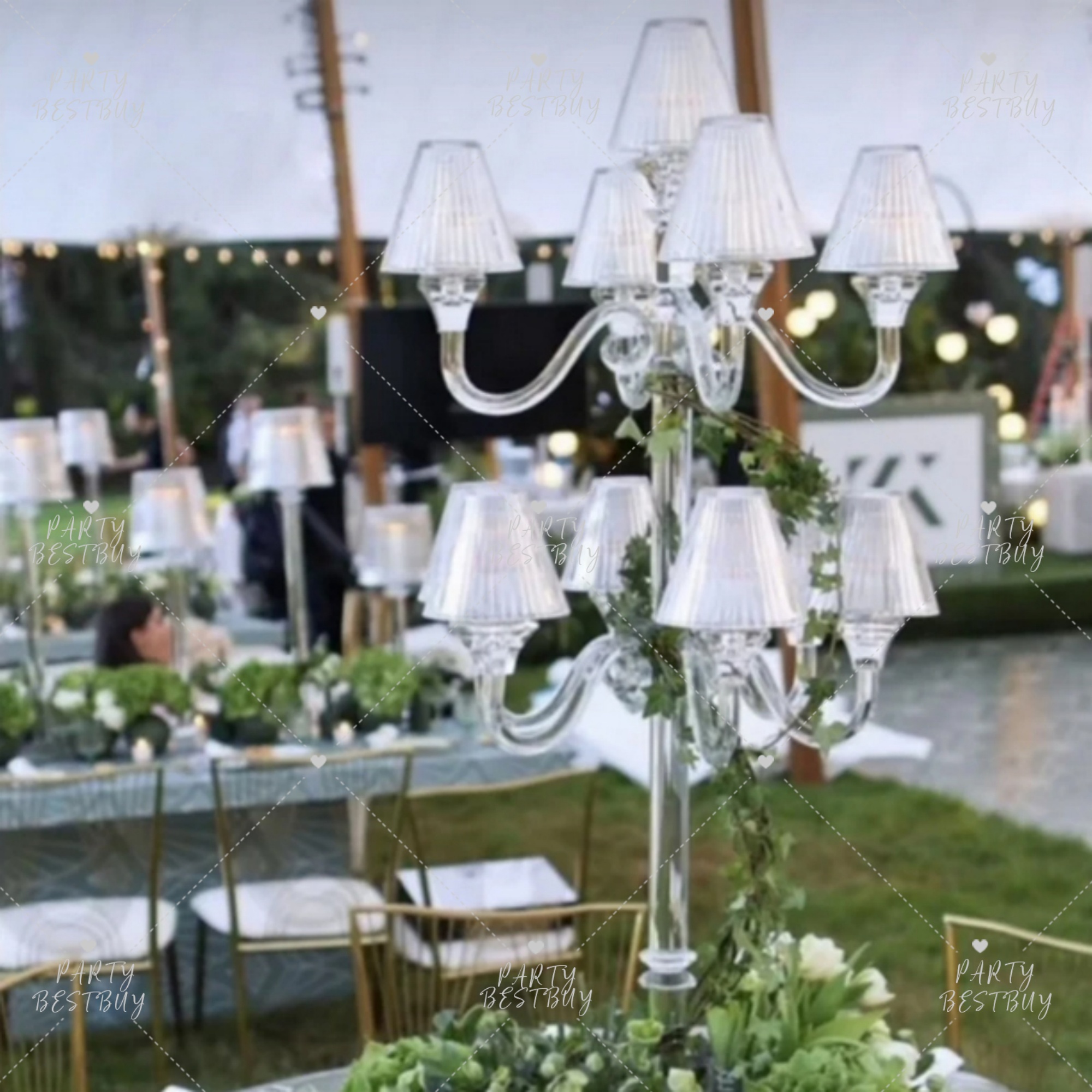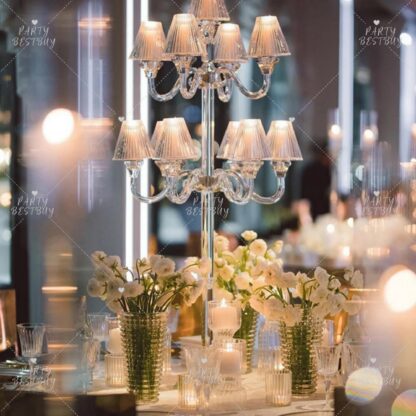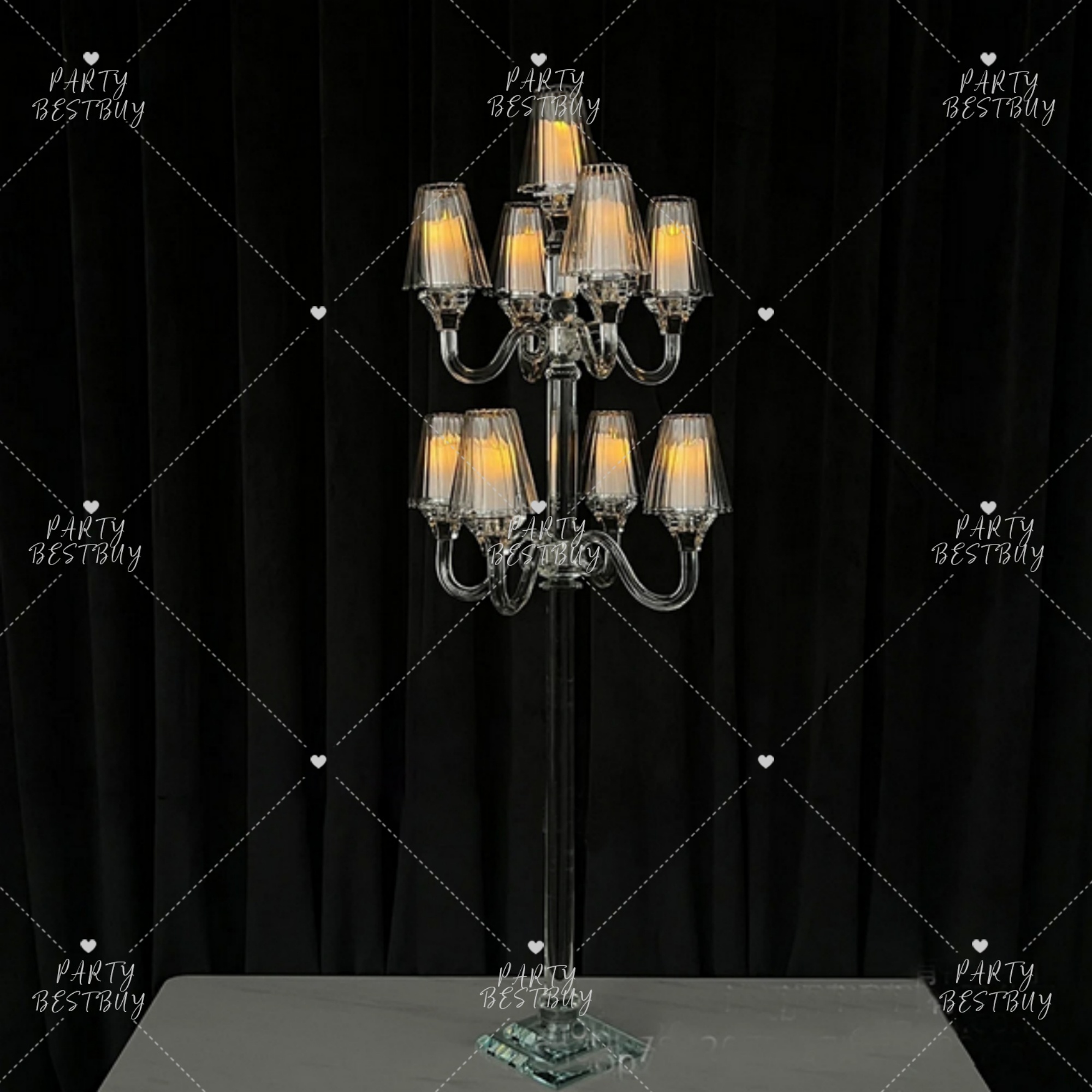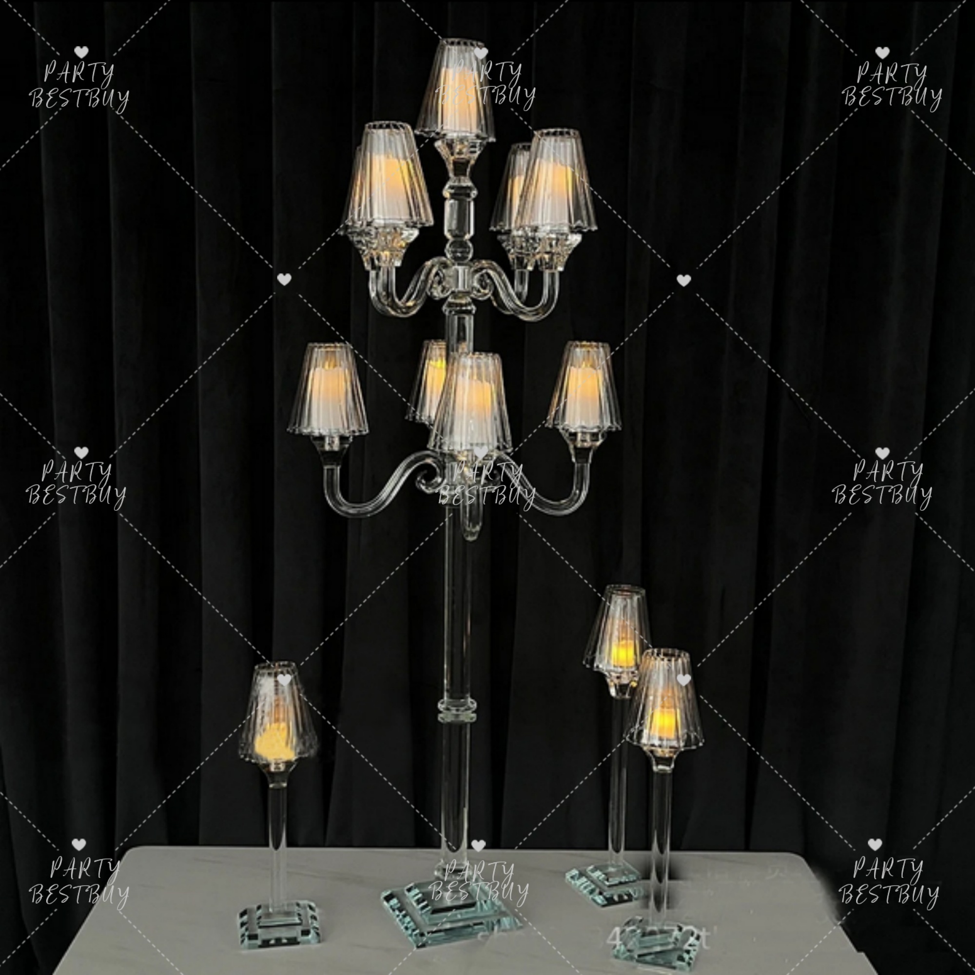 9 Arms 1.3M Clear Crystal Candle Stand Centerpiece table decoraion Lampshades