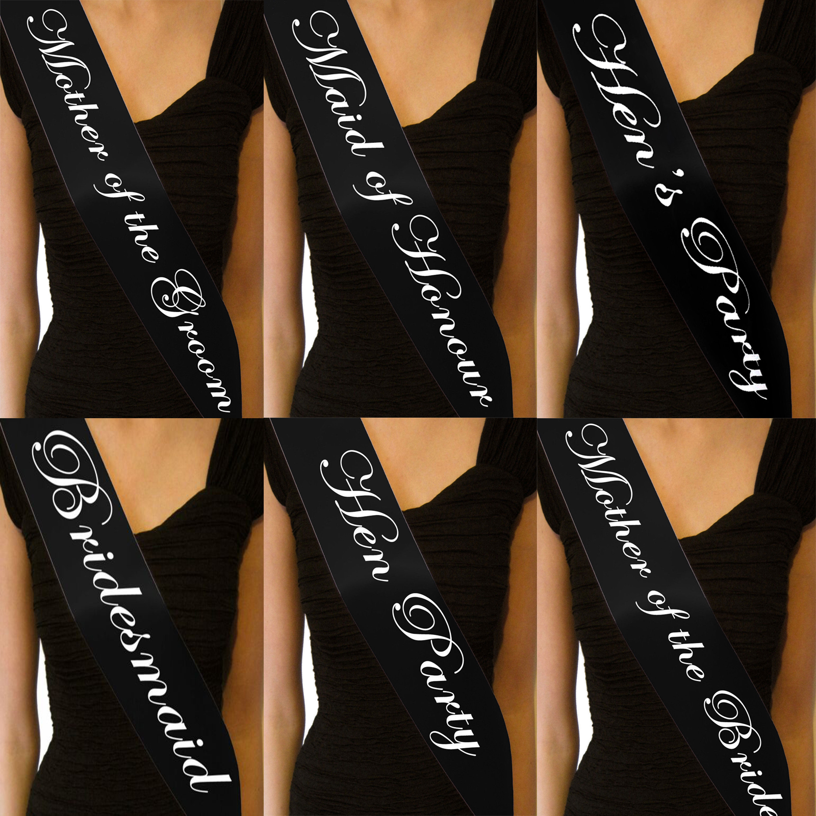 Black Sashes White Text Hens Night Party Bridal Bride To Be Bridesmaid Wedding