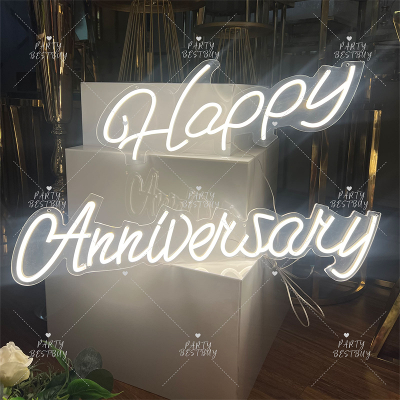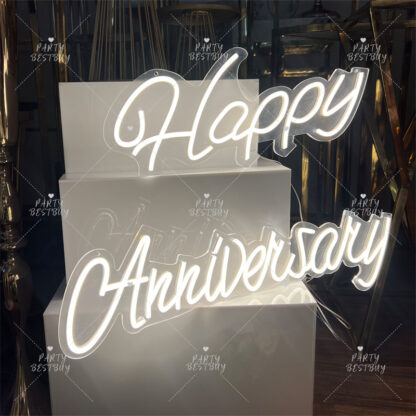 Bright White Happy anniversary Neon Sign Led lights Anniversary Event Wedding